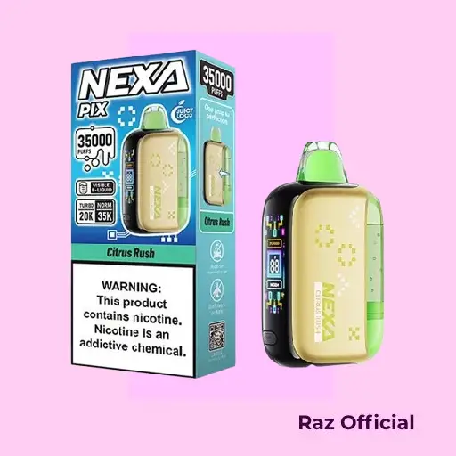 Upgrade your vaping experience today with the Citrus Rush Nexa Pix 35K Puffs Disposable Vape. Enjoy long-lasting puffs, premium flavor, and advanced features in one sleek device. Order now and feel the difference!