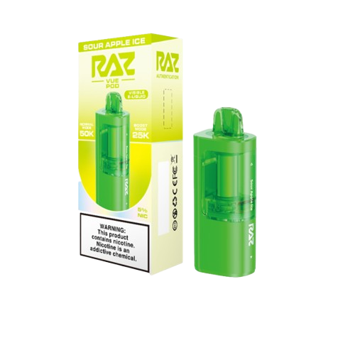 The Sour Apple Ice Raz Vue pod is made for users who enjoy a mix of fruity sharpness and icy freshness. The apple flavor has a slightly sour edge that gives it a crisp taste, while the cooling layer adds a smooth and chilled feel on every puff. This balance makes the flavor enjoyable for longer sessions. It is not too sweet, and the cooling effect is steady rather than overpowering. The taste stays consistent from the first puff to the last, giving you a reliable flavor experience each time you use the pod.
